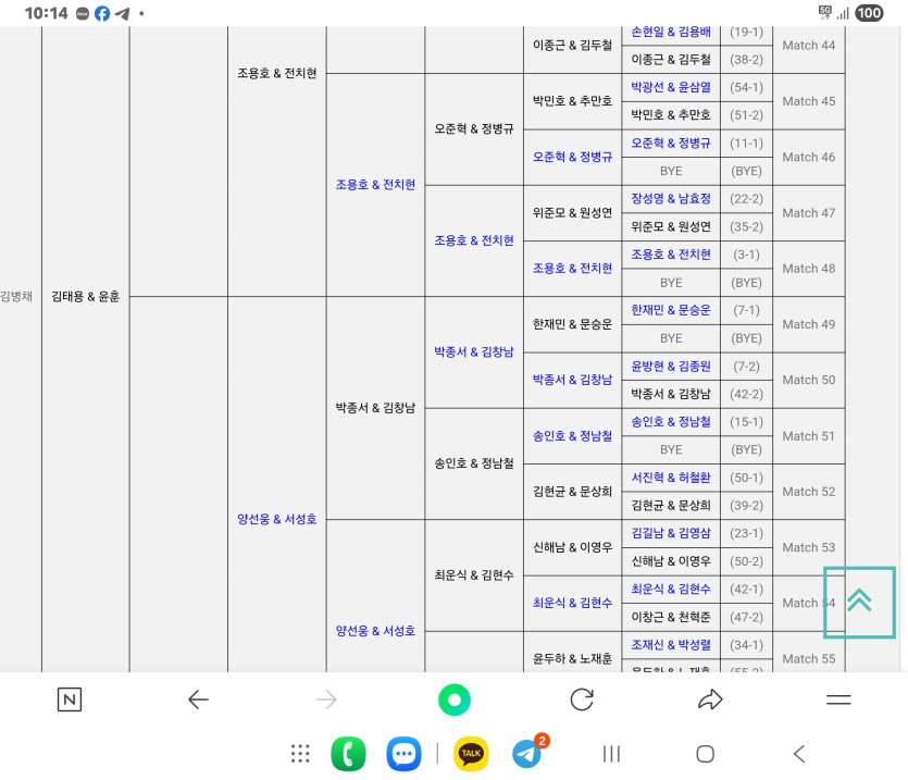 파트너 변경을위해 홈페이지에서 파트너 변경을하고자 했으나 수정클릭이 되지않아 목포시 경기이사님께 파트너 변경 말씀드리고 시합을 참가했는데 랭킹포인트가 최초 참가자에게 반영되었습니다.